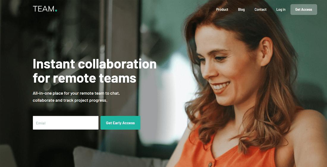 Strona główna zawiera sekcję nagłówkową ze zdjęciem na całej szerokości. Poniżej znajduje się sekcja, która naprzemiennie pokazuje różnorodne funkcje i zalety aplikacji. Na końcu znajduje się rozbudowana stopka.